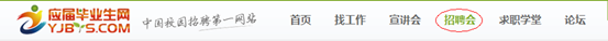 第一步:進(jìn)入應(yīng)屆畢業(yè)生網(wǎng)(www.x-im.cn )首頁(yè),在網(wǎng)站首頁(yè)頂部導(dǎo)航欄點(diǎn)擊“招聘會(huì)”,即可進(jìn)入“YJBYS招聘會(huì)查詢系統(tǒng)”,你也可以輸入 直接進(jìn)入該系統(tǒng);