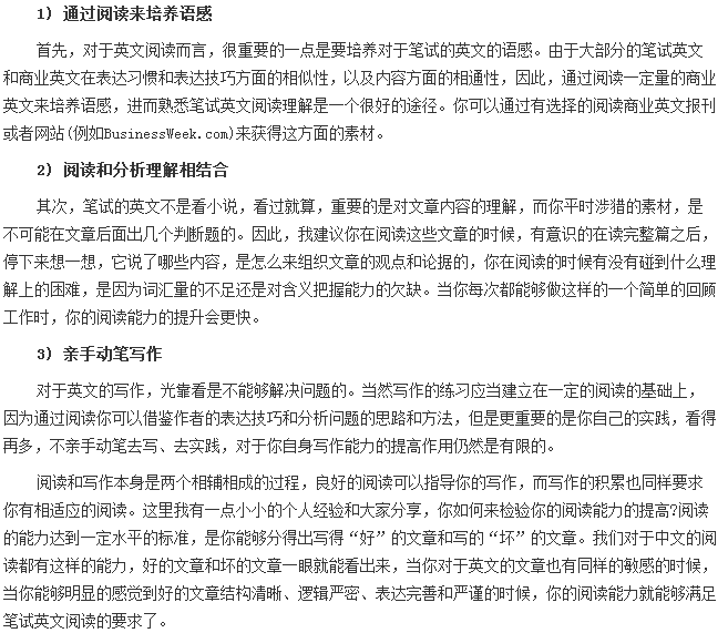 無論是英文的書面表達(dá)能力,邏輯思維的能力和分析問題的能力還是對于知識(shí)域的了解和掌握,都是一種長期的實(shí)踐和積累,并不是可以一蹴而就的。