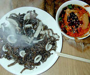灌腸是地道的北京小吃,以前都是挑擔(dān)子的小販走街串巷的賣。