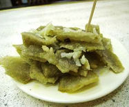 灌腸是用淀粉揉成條狀,上鍋蒸熟晾涼后切片,下油鍋炸或煎熟后,蘸蒜汁食用的一種傳統(tǒng)小吃。