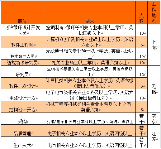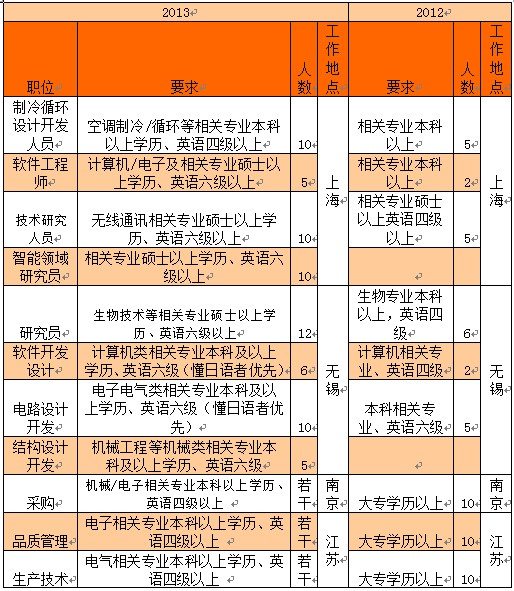 通過上表可以看出,夏普2013的招聘人數(shù)明顯增加,招聘比重增幅增大,也出現(xiàn)了部分新招,2012年也都沒有招聘,如智能領(lǐng)域研究員,由此也看出夏普今年人員需求量逐步增加。