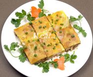 “三鮮豆皮”是武漢人早點(diǎn)的主要食品之一,也是武漢民間極具特色的傳統(tǒng)小吃。最初是武漢人逢年過節(jié)時特制的節(jié)日佳肴,后來成為尋常早點(diǎn)。色澤金黃透亮,鮮艷奪目,皮薄軟潤爽口,滋味鮮美,含有蝦、菇、肉香。以其獨(dú)特風(fēng)味逼近聞名。豆皮制作過程中要求“皮薄、漿清、火功正”,這樣煎出的豆皮外脆內(nèi)軟、油而不膩。