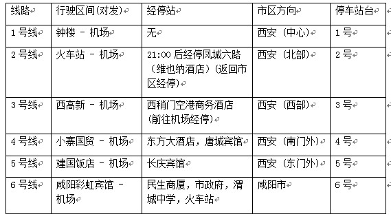 溫馨提示: 西安市區(qū)機(jī)場巴士票價(jià)26元,請上車購票(含1元燃油附加費(fèi)),西安市區(qū)線路全程正常行駛時(shí)間約60分鐘。